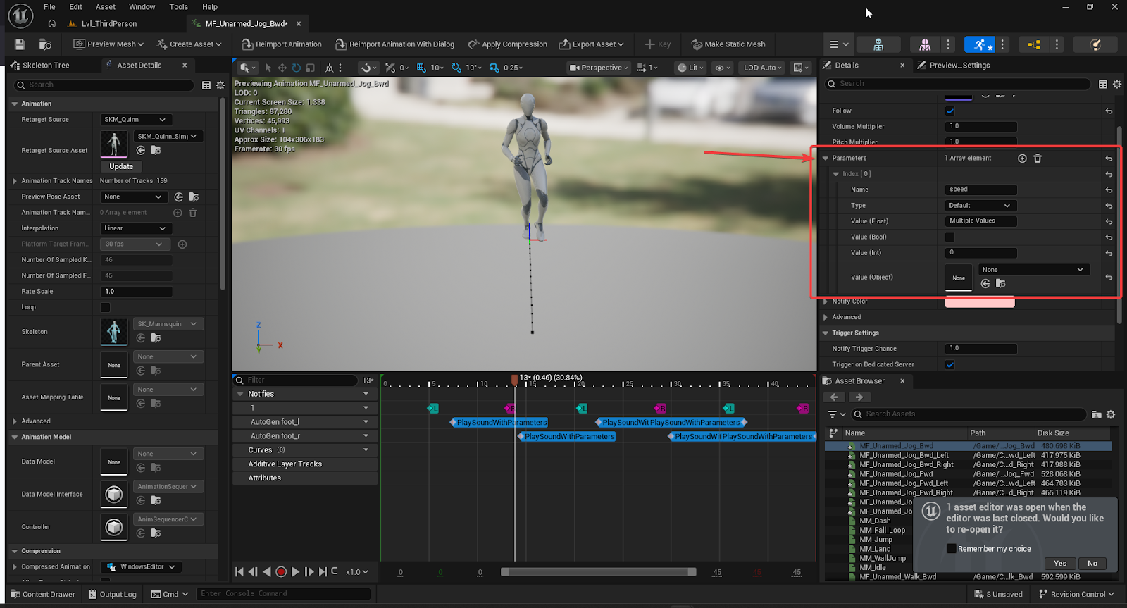Finally press βGenerate Footstep Eventsβ. You should see your animation files have been modified and if you open one of those, you should see animation notifies have been added to the timeline.Β