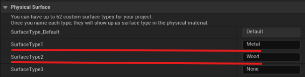 For example, imagine that your first input in the metasound is assigned to Wood, but Wood is actually the 4th element in your project settings. When the Wood surface type will be detected to the system it is going to be translated to an integer of value 4 which doesn’t correspond to Wood sounds in your metasound.
