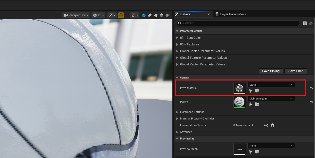 From the Physical Material details panel you can select the desired Surface Type for the given material: